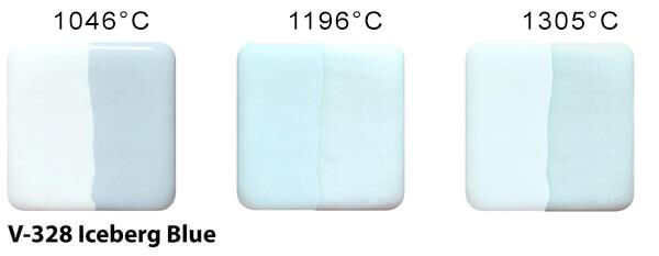 Die Unterglasur Iceberg Blue ist eine helle, bläuliche Farbe, die bei ca. 1050°C taubenblau ist, ab 1200°C etwas dunkler wird, ihren hellblauen Farbton jedoch bis 1300°C beibehält.