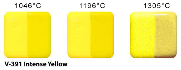 Die Unterglasur Velvet Intense Yellow von Amaco ist ein helles ananasfarbiges Gelb, das bei 1045°C intensiv ist und sich ab 1200°C etwas heller wird. Eine transparente Glasur vertieft die Farbe der Unterglasur bei jeder Temperatur erheblich. TIPPS und ANWENDUNG