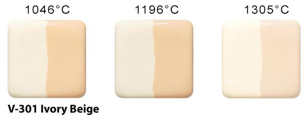 Ivory Beige ist eine zarte Creme-Farbe, die bei ca. 1050°C sehr hell wird. Sie erwärmt sich bei etwa 1200°C ein wenig, hellt ab höheren Temperaturen sehr stark auf.