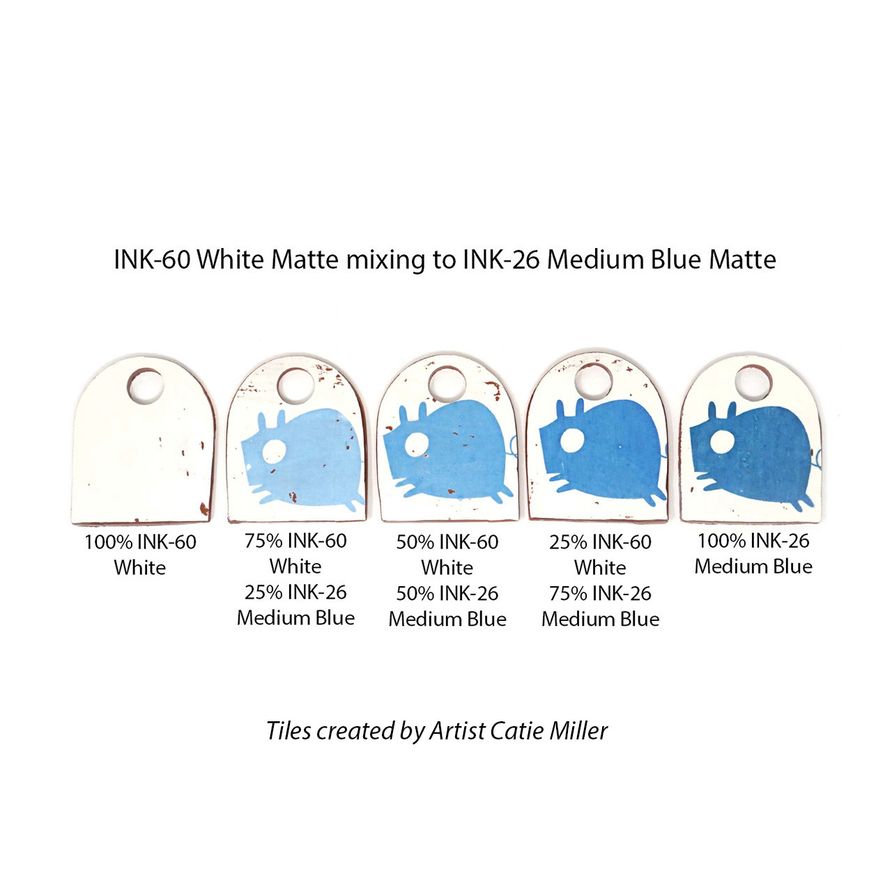 Amaco Jet Black Matte Ink zeigt einen kühlen, tiefschwarzen Ton, der bei niedrigerer Temperatur samtig-matt wirkt, bei mittlerer Temperatur sichtbar nachdunkelt und bei hoher Temperatur sein intensivstes Schwarz mit leichtem Glanz erreicht. Eine transparente Glasur steigert die Tiefe und Brillanz des Farbtons zusätzlich.