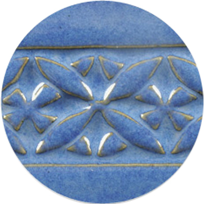 Fließender Saphir (Sapphire Float) von AMACO ist eine glänzende, denim-blaue Glasur. Die Glasur bricht über der Textur in eine grün-graue Farbe.