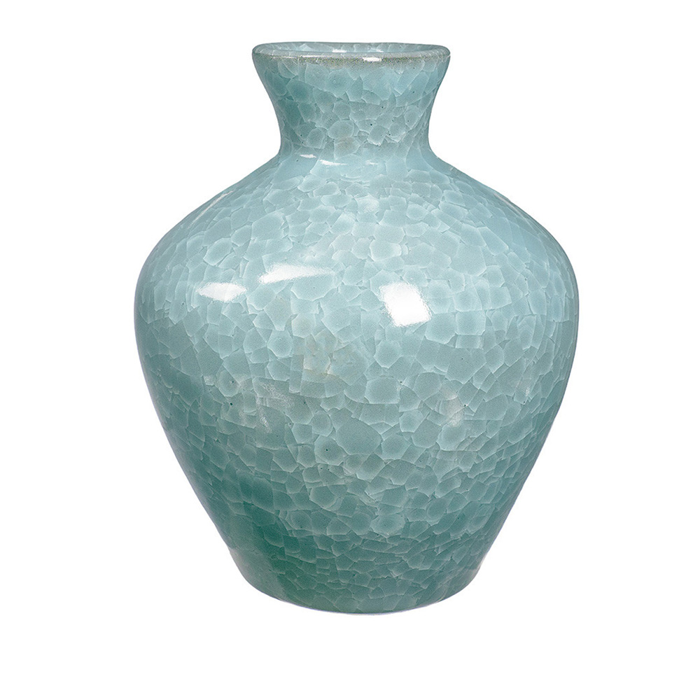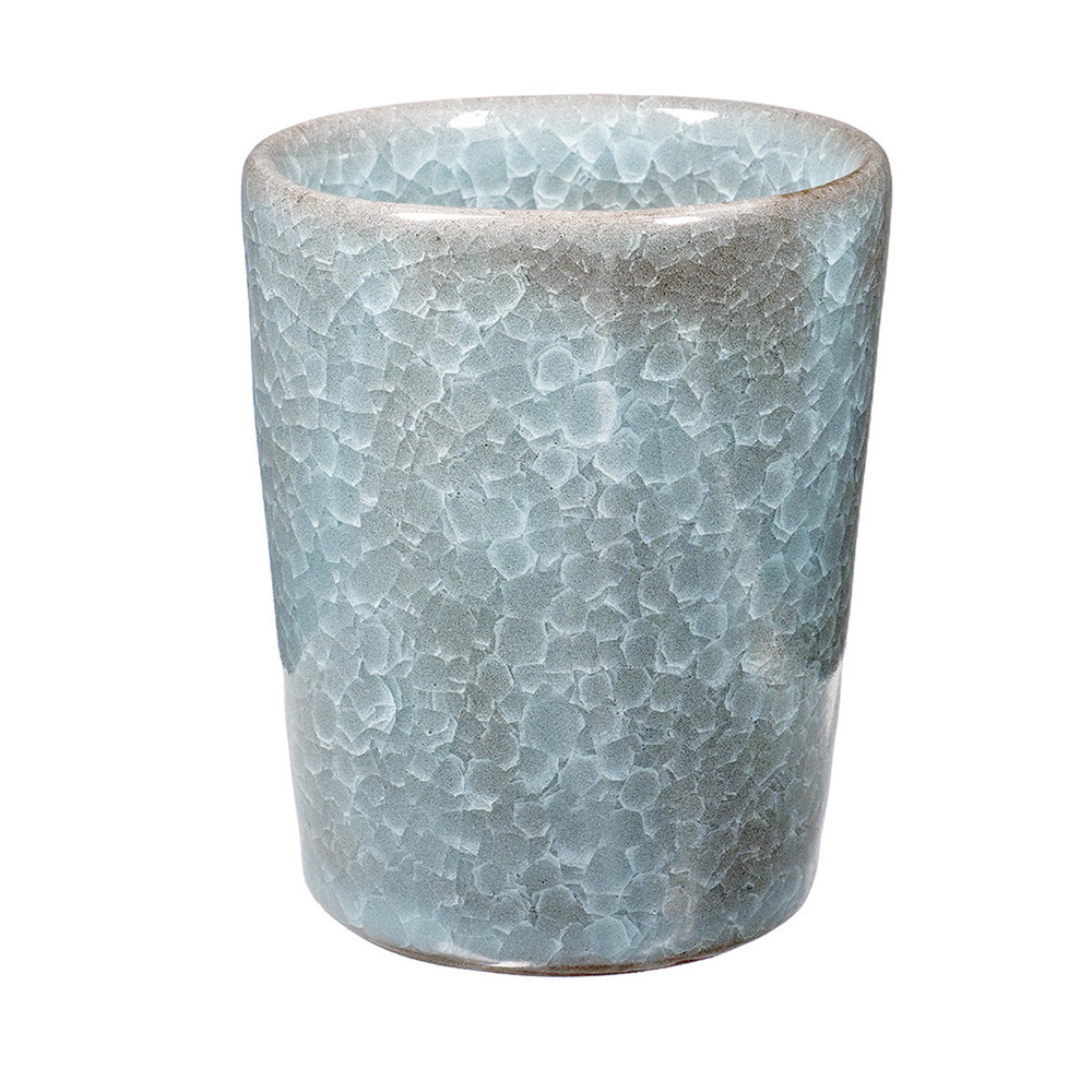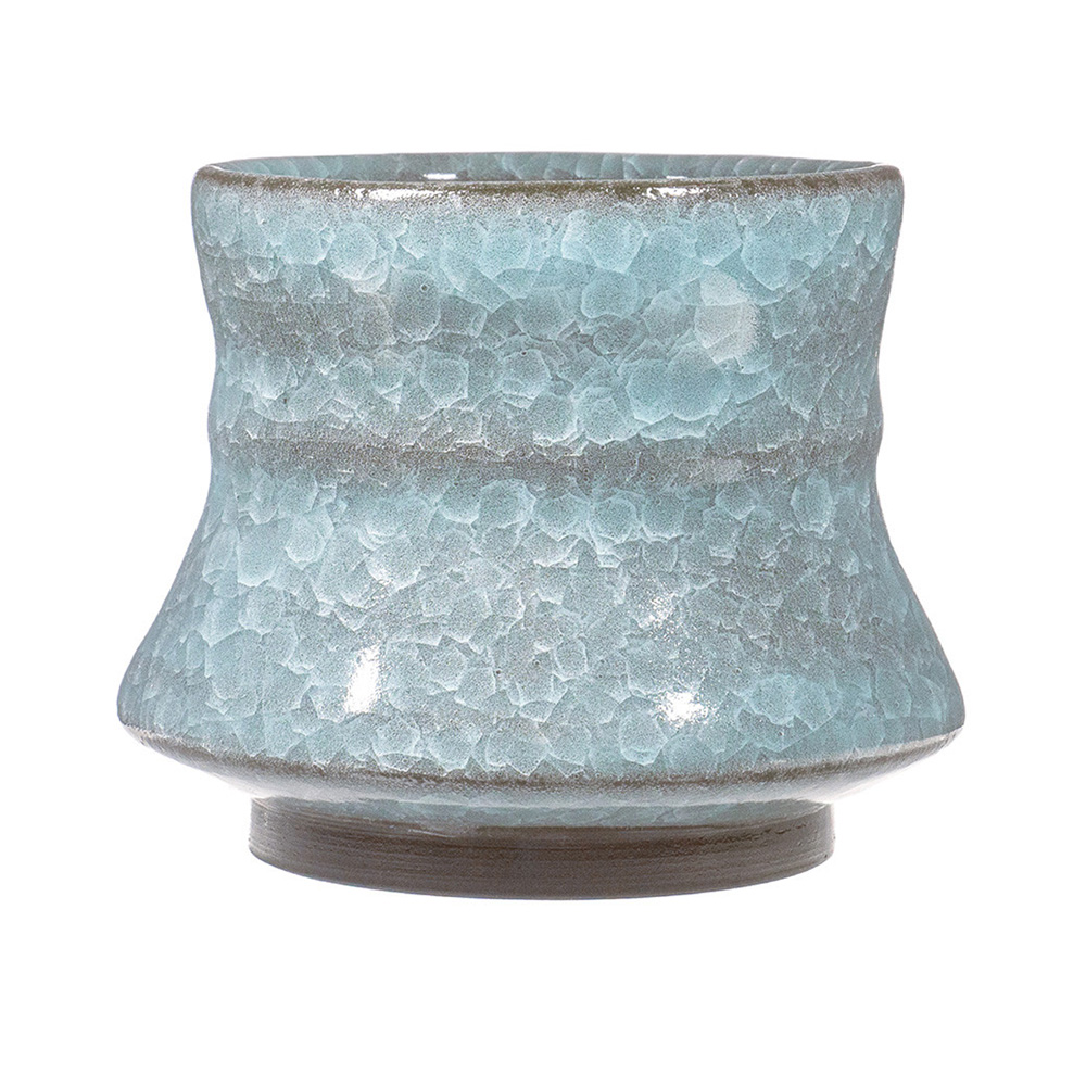 Die Glasur bleibt dabei transparent und erhält durch das Craquelé einen subtilen, mehrschichtigen Effekt. Je nach Auftrag und Tonfarbe kann das Ergebnis stärker ins Blaue oder ins Grünliche spielen, was jedes Stück zu einem natürlichen Unikat macht.