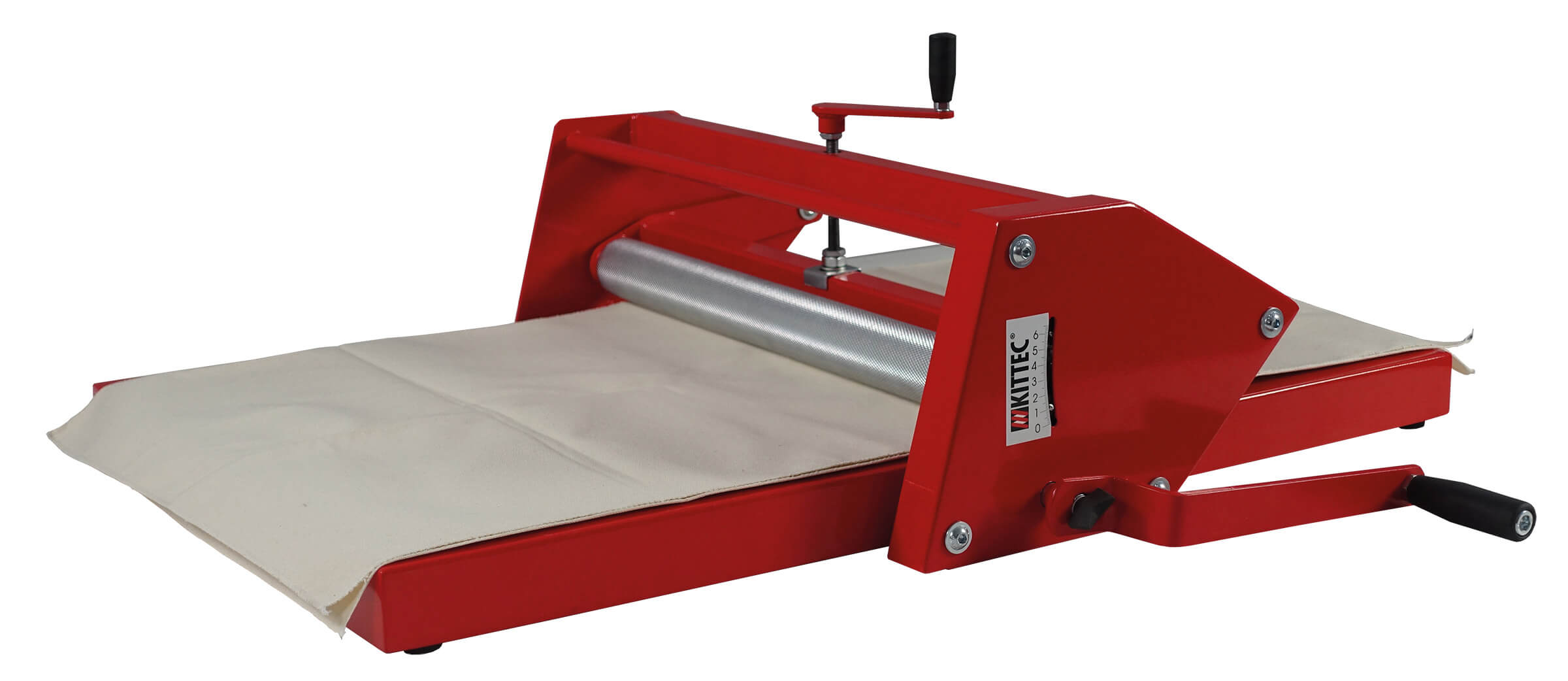 Die große Arbeitsfläche der KITTEC RS macht auch das Walzen großer Platten komfortabel. Dabei ist die Plattengröße nicht durch die Maße der Arbeitsfläche begrenzt, unter Verwendung von zwei Leinentüchern können auch größere Platten hergestellt werden.