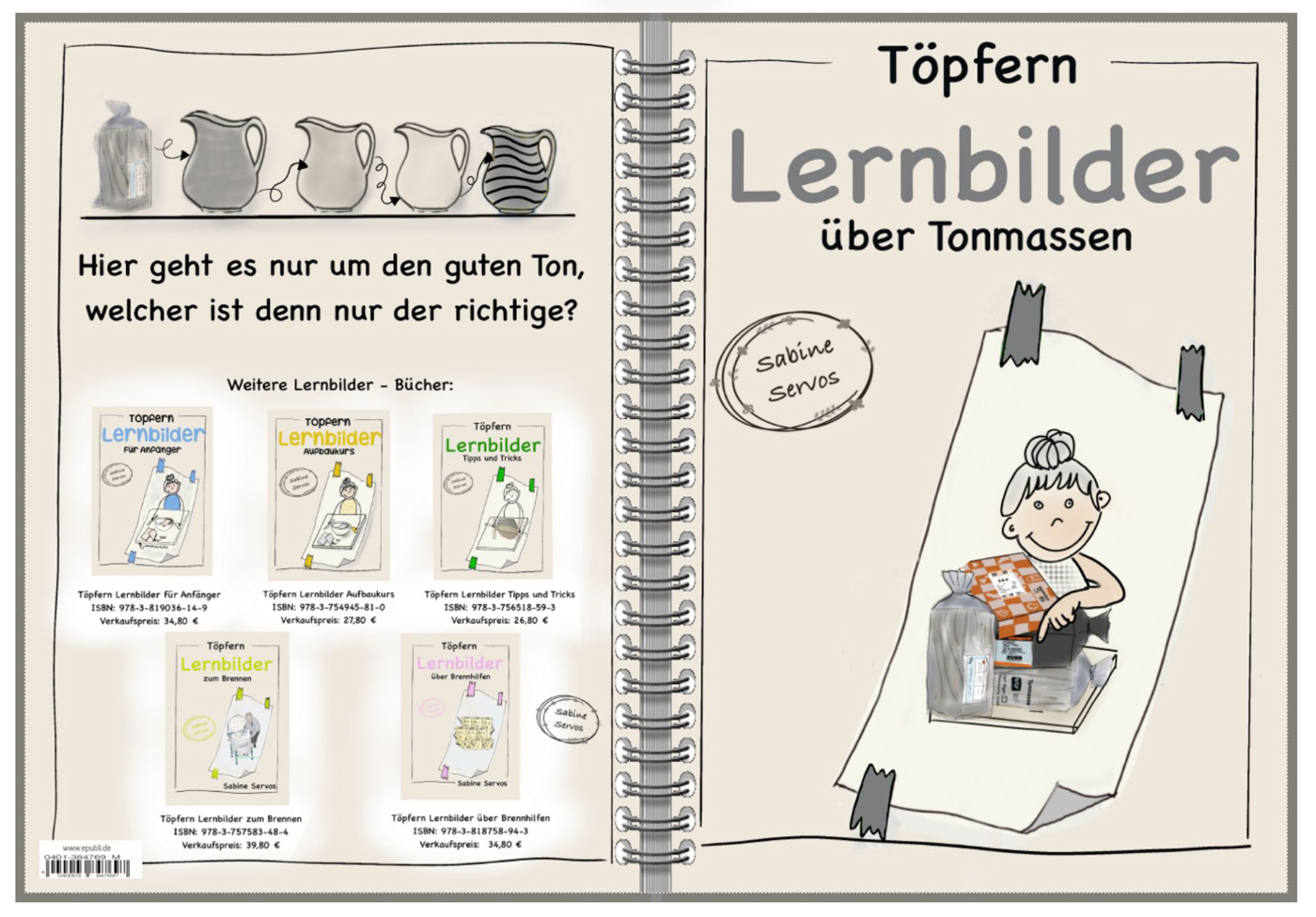 Das Grundlagenbuch "Lernbilder über Tonmassen" von Sabine Servos vermittelt Dir ein fundiertes Verständnis für Ton und Tonmassen. Mit anschaulichen Lernbildern ist es ideal für Einsteiger, Kurse und alle, die den Werkstoff Ton wirklich verstehen möchten.