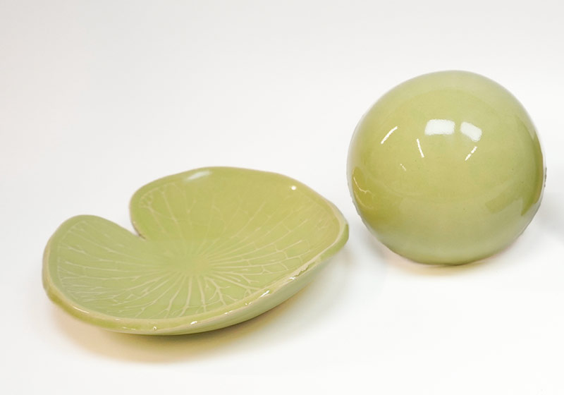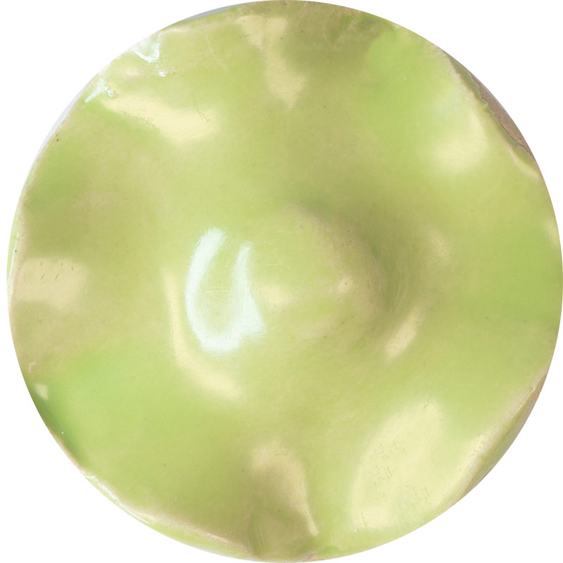 Die Steinzeugglasur Maigrün erzeugt ein helles Grasgrün. EIGENSCHAFTEN