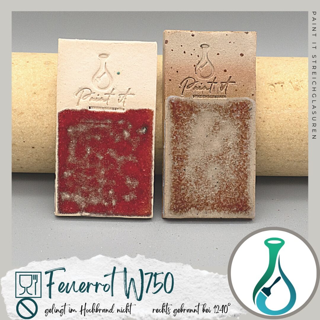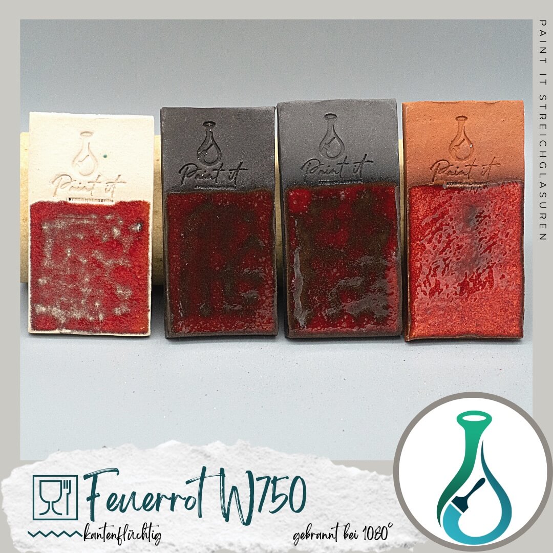 Die Streichglasur Feuerrot ist eine sehr lebendige Glasur mit aufregendem Effekt. An Kanten bricht diese glänzenden Effektglasur transparent auf, was spannende Spielereien mit Oberflächentexturen und dunkleren Tonsorten ermöglicht. Die Glasur muss sehr satt aufgetragen werden, damit Farbton und Effekt sichtbar werden. Dünn aufgetragen brennt sie eher orange bis sogar transparent.