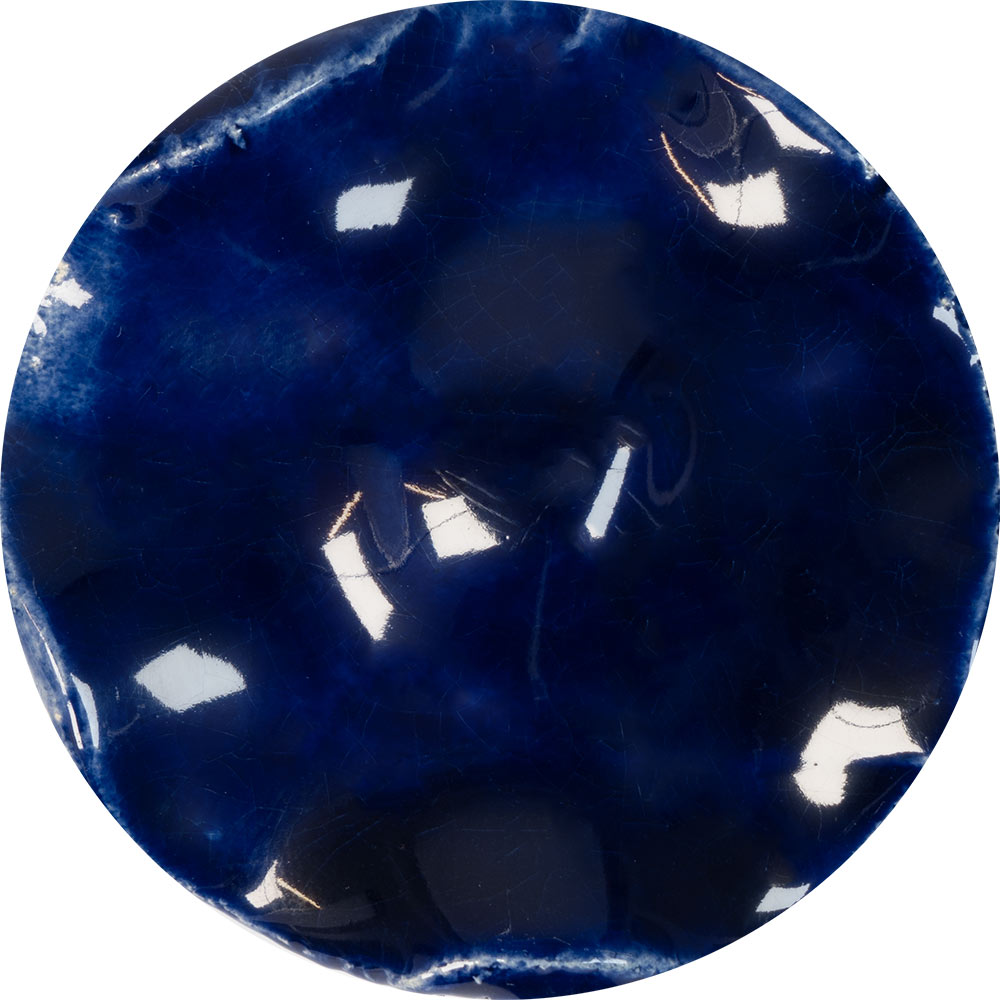 Die Vario-Glasur Königsblau ist eine tiefviolett-blaue, intensiv leuchtende Glasur mit edler, fast samtiger Tiefe. Das satte Blau wirkt je nach Licht mal mystisch dunkel, mal kräftig strahlend – ein echter Blickfang auf jeder Keramik.