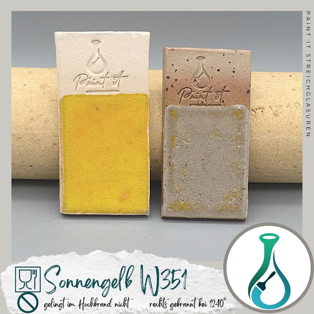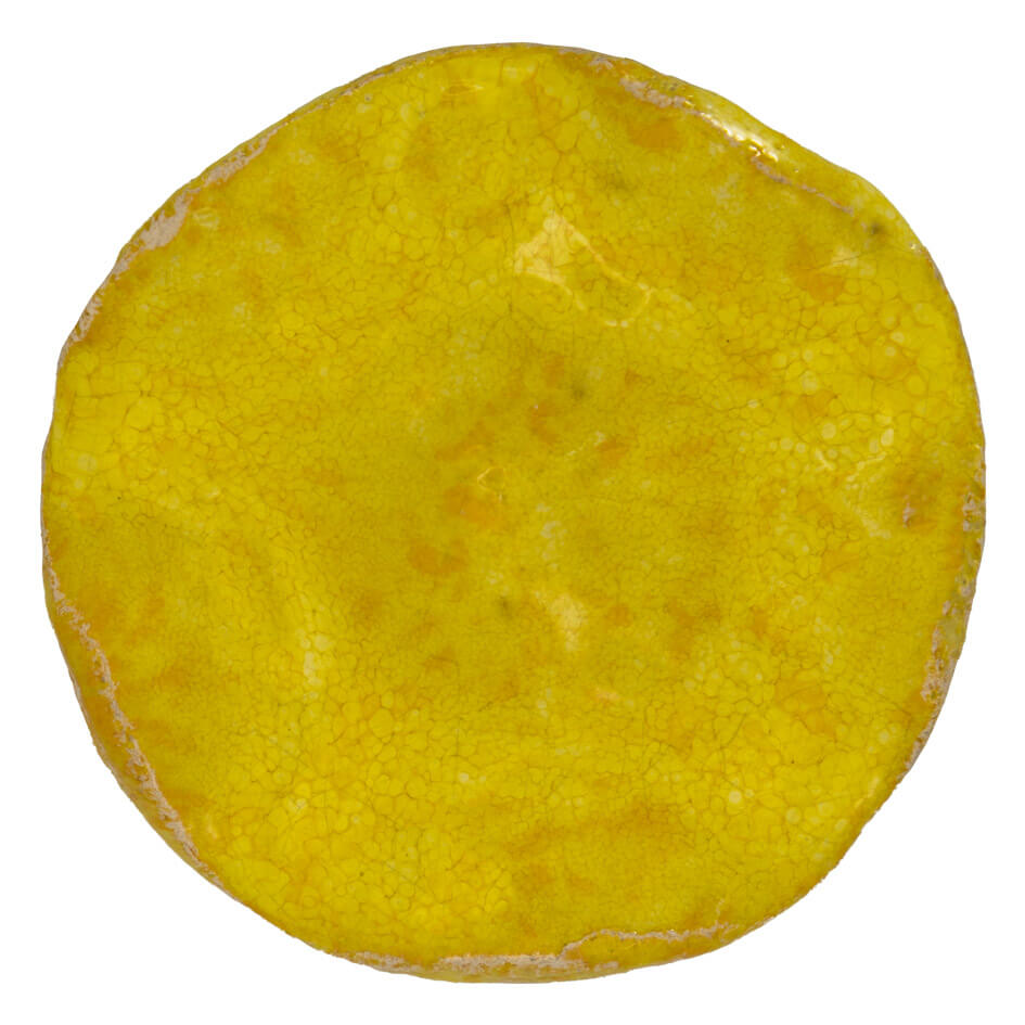 Die Glasur brennt glänzend und zeigt eine spannende, unregelmäßige Craquelé-Struktur. Diese feinen Risse verstärken den Eindruck von Tiefe und lassen die Glasur fast glühen, besonders dort, wo sich kleine orange-gelbe Wolken bilden.Eine farbintensive Glasur für Akzente und Highlights.