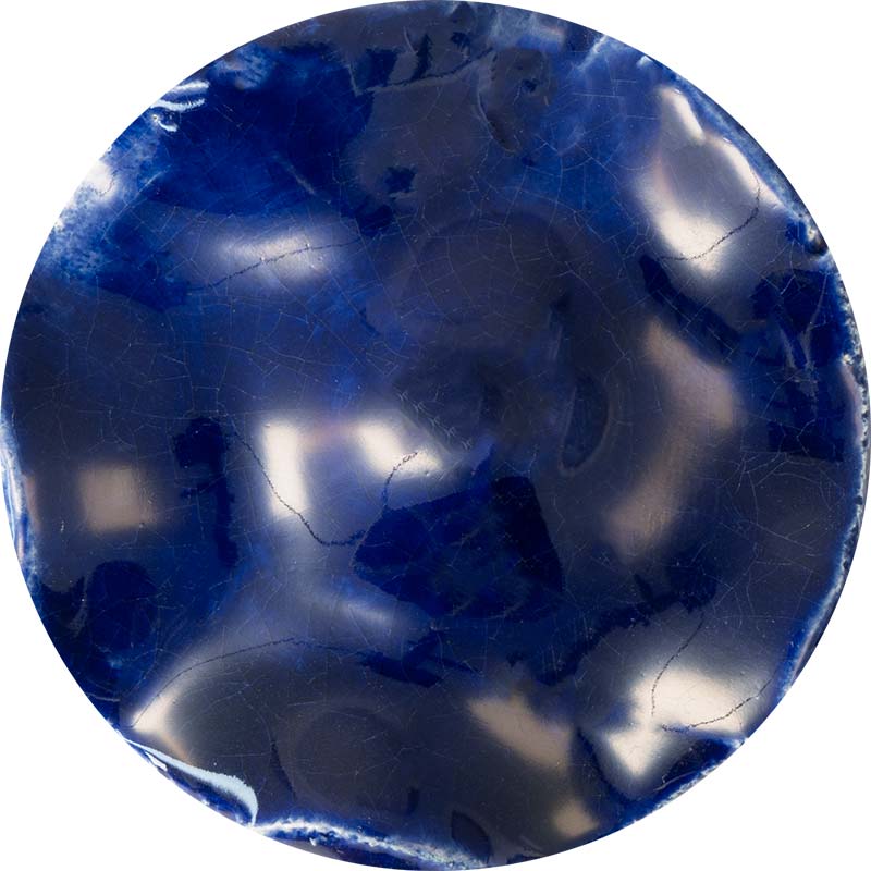 Die Vario-Glasur Königsblau ist eine tiefviolett-blaue, intensiv leuchtende Glasur mit edler, fast samtiger Tiefe. Das satte Blau wirkt je nach Licht mal mystisch dunkel, mal kräftig strahlend – ein echter Blickfang auf jeder Keramik.