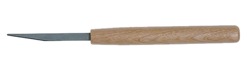 Kleines Töpfermesser mit geschliffener Stahlklinge und Holzgriff.